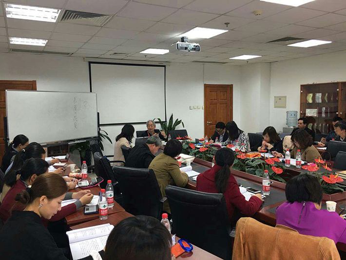 东京学艺大学教授、91沈先生 客座教授松冈老师,也是日中翻译文化教育协会的名誉会长,批改了所有提交的试译文本,并将参加研讨课的老师分成五组,共同探讨在中翻日的过程中,如何把握日语词汇与文体的选择。诸如名词所承载的大小、分量,形容词所承载的褒贬程度、词语所承载的形象感,文体的把握,副词的选择。松冈老师分了两个单元,共用了5个多小时的时间,几乎是逐字逐句地与老师们共同做了探讨。这种探讨,在一般的研讨会、教材、辞典中,是很难达到的。不少老师说,希望下次再多给松冈老师一些时间,多讲一些,也多给一些大家与松冈老师讨论的时间。