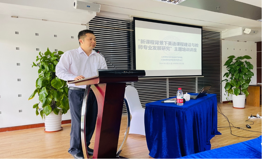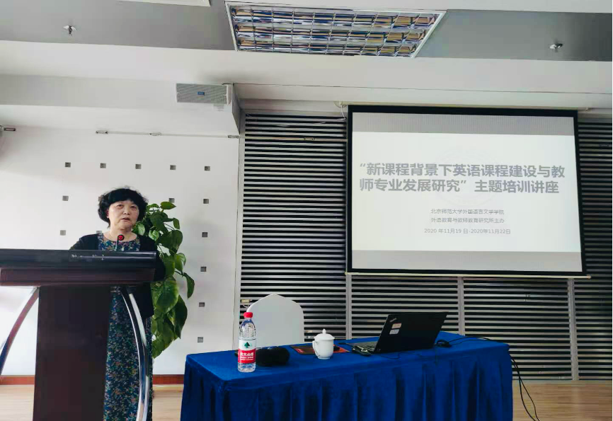 本次培训讲座在2020年11月20日9点30分于北师大珠海校区国际交流中心第三会议室正式开始。我所王蔷教授以及容山中学丘副校长在开班仪式中分别进行致辞。两位老师表示,希望通过此次关于英语学科课程建设和高中英语教师专业发展研究的培训,帮助教师理解新课程和新高考的整体方向和改革思路,理解英语学科核心素养和学科核心能力,同时,两位老师也希望各位参加培训的老师能够珍惜本次培训机会,并在本次讲座活动中能有所收获。