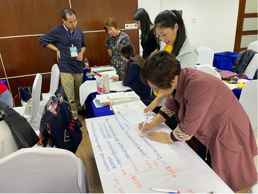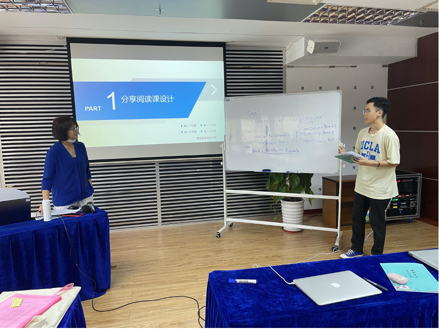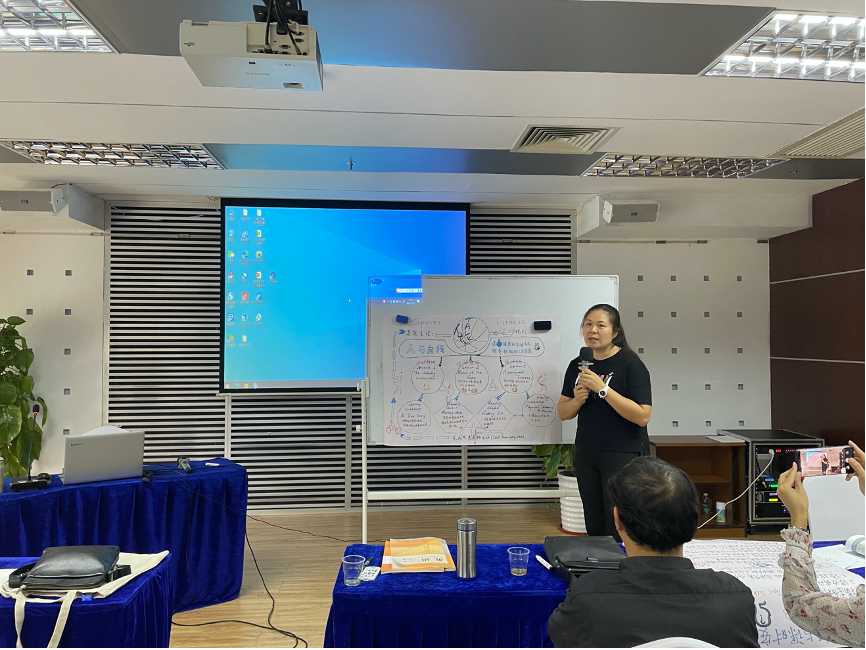 下午,王蔷教授就第一天“大观念背景下的英语教学实践”主题讲座带各位老师们进行教学设计实践。王老师首先带领各位老师观看了优秀单元整体教学设计的视频,让老师们分小组进行教学设计、绘制教学结构图并进行展示,最后对每个小组的展示进行点评,并给出建设性建议。