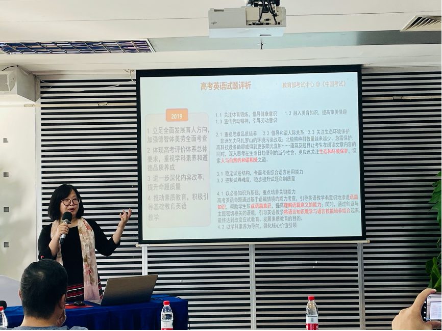 雷蕾老师在讲座中带领各位老师回顾了我国课程教学改革的不同阶段,对广东省高考英语进行了详细的试题评析,并根据自己的教学经验给到各位老师教学建议。