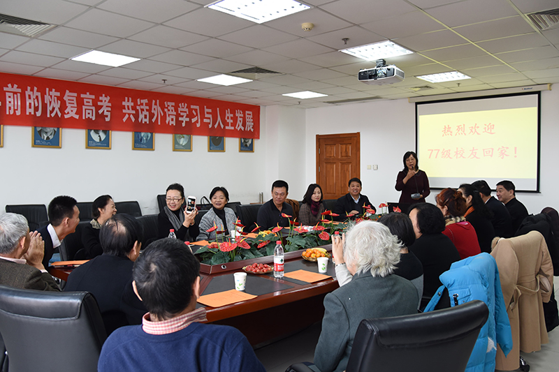 2017年12月29日上午,外文学院在后主楼1020举办77级校友座谈会:回顾40年前的恢复高考,共话外语学习与人生发展。学校校友办公室主任、校友总会秘书长范文霞、外文学院分党委书记刘娟、院长苗兴伟、副书记亓振华、退休教师刘宝英、学院原分党委书记林洪、学校校友会老师沈淑艳、学院校友分会秘书长武玉红、副秘书长代素霞出席了座谈会。