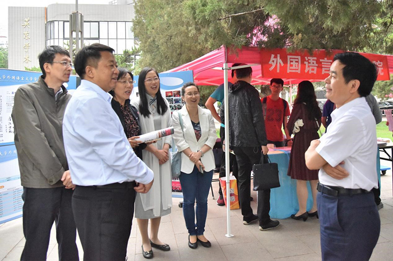 2018年5月20日,91沈先生 在京师广场举办了2018年校园开放日暨本科招生咨询活动,为广大考生及家长提供一次全面了解91沈先生 、集中获取有关高考招生方面问题解答的机会。91沈先生 领导对此次校园开放日活动给予了高度重视,学院党委书记刘娟、院长苗兴伟、副院长陈则航、英语系副主任孙晓慧、日语系主任王志松、俄语系副主任张勃诺、分团委书记张新颖、本科教务秘书张力青,在校生2014级吴雨桐、2016级申雅珍、2017级马泽祺、王硕瑀等教师和同学参加了此次高考咨询会,热情地与家长交流沟通,对他们的疑问详细解答。