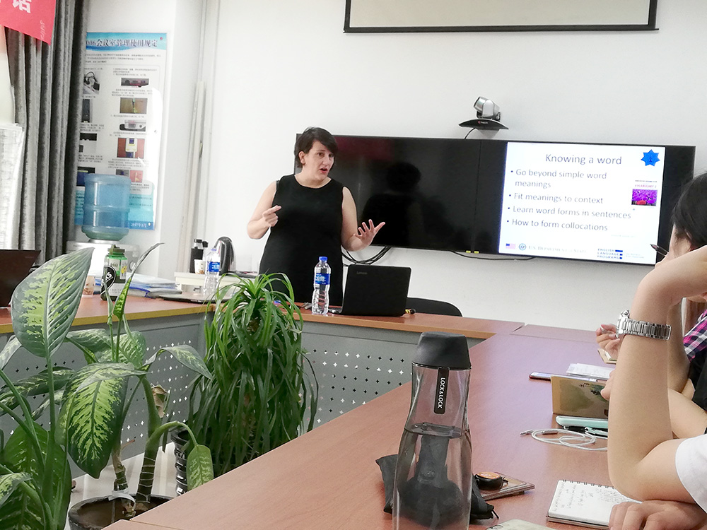 2019年5月17日上午10点,英文系邀请外籍教师Sarah Warfield在后主楼1006作了题为“Strategies for Teaching Vocabulary”的精彩讲座。本次讲座吸引了本院的教师、硕博士生、本科生以及访问学者等诸多群体参加。