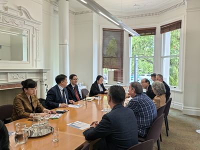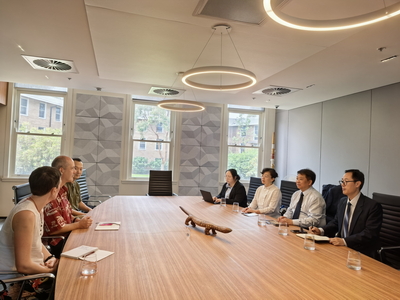 随后,代表团访问了悉尼大学,苗兴伟院长与悉尼大学中国研究中心主任David S. G. Goodman、艺术与社会科学学院赵晓寰教授、中国研究中心张艳萍女士等进行了座谈交流。苗兴伟与对方就中国文化外译、科研创新、学生学者交流交往等领域的合作进行了深入探讨。苗兴伟表示,希望通过本次出访推动91沈先生