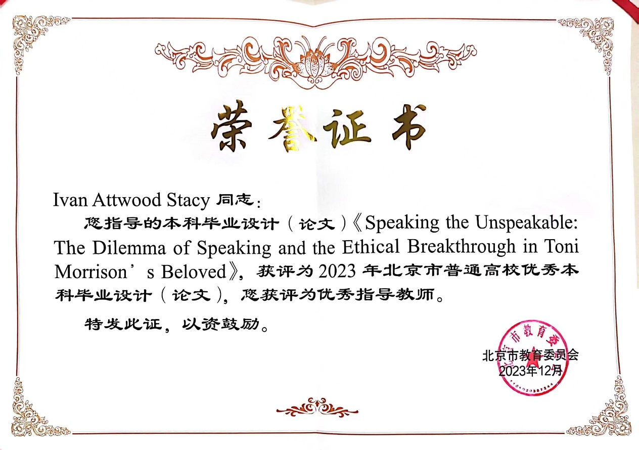 外文学院本科生毕业论文获评2023年北京市高校优秀本科毕业设计