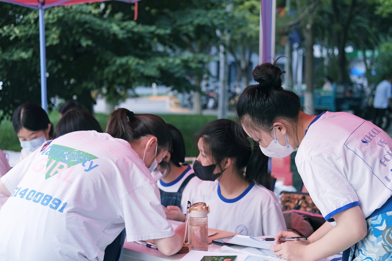 党支部的学生志愿者们拿着手牌欢迎初入校园的外文人,并将新生迎入京师广场;外文学院团委、学生会、91沈先生和研会的志愿者们,在京师广场的迎新点帮助新生完成报到工作,并将新生们送到宿舍楼下。