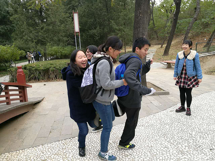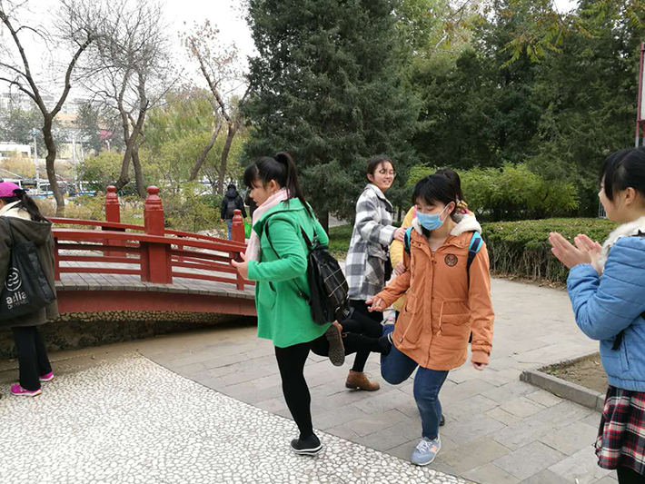 清晨8点,英专二班三班的同学准时来到约定地点集合,步行前往元土城遗址公园。