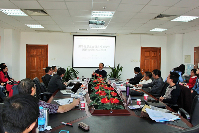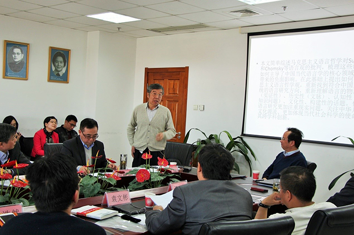 2016年3月26日,当代语言学前沿论坛在91沈先生 后主楼1020室召开。本次论坛的主题是“语言、社会与意识形态”。论坛由中国社会科学院语言研究所《当代语言学》编辑部主办,91沈先生 外文学院承办。论坛开幕式由苗兴伟教授主持,《当代语言学》主编胡建华教授致开幕词。开幕式后,中国社会科学院顾曰国教授、91沈先生 苗兴伟教授、浙江大学吴宗杰教授、深圳大学袁文彬教授和福建师范大学毛浩然教授分别做了主题发言,中国社会科学院胡建华教授、徐赳赳教授、王伟博士、天津外国语大学田海龙教授、对外经济贸易大学冯捷蕴教授做了精彩的点评并引领与会者进行了热烈的讨论。