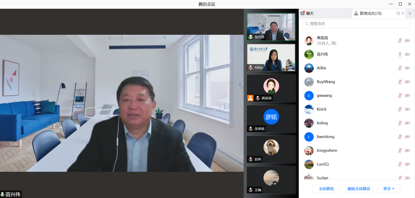 2022年1月19日,外文学院通过腾讯会议在线召开党政班子述职大会暨全院大会,会议由院长苗兴伟主持,学院教师共计80余人参加了会议。党委书记艾忻、副书记张新颖、副院长陈则航、于晖、郭乙瑶、工会主席王德亮、院长苗兴伟依次进行述职,向全院教师总结和汇报过去一年的各项工作。苗兴伟在会上向与会教师汇报了1月18日董奇校长带领机关部处相关负责人到外文学院进行调研德的相关情况,鼓励学院教师抓住学院“双一流”学科建设的宝贵机遇,努力加强教学工作和科学研究,助力学校“一体两翼”建设和学院“双一流”学科发展建设。