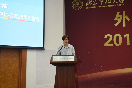 典礼在雄壮的国歌声中拉开帷幕。院长苗兴伟代表全院师生欢迎新同学的到来,衷心地祝贺2019级新生开启人生新征程。苗院长在讲话中为同学们介绍学校、学院的发展情况、办学理念、办学层次以及组织结构和人才培养目标,并对同学们提出三点希望:第一,学习是第一要务,积极探索新知;第二,积极走出国门,感悟世界文化多样性;第三,大学生活绝不仅仅是知识的学习,全面的发展和个性的养成同样重要。他希望同学们从现在做起,养成良好的学习习惯和生活习惯,塑造健全人格,提高自身素质。英文系胡笑然老师作为学院教师代表发言,她讲到,在大学学习方法需要转变,学到的是见识和思维方式,而不是在考试前死记硬背。希望同学们要对知识抱有尊敬,对生活和世界常怀有一颗孩童之心,把追求知识、独立思考变成一种习惯,拒绝浮躁与不良风气,度过快乐、纯真而充实的大学时光。随后,老生代表邵浩博、李小康,新生代表夏艺菲、张少杰分别发言。典礼最后,学院党委书记刘娟老师做了总结讲话,刘老师在讲话中与同学们探讨了“我”与“他人”的关系,她希望同学们尊重自己、善待他人,做好自己、影响他人,有良好的习惯、强健的体魄以及纯净的心灵,正确处理自己与他人、社会以及环境之间的关系。青春不是可以随意挥霍的,要珍惜每一分每一秒,坚守独立人格,牢记“三人行必有我师”,多向身边人学习,汲取优点,改正缺点,不断自我完善。典礼最后,全体师生共同齐唱校歌。
