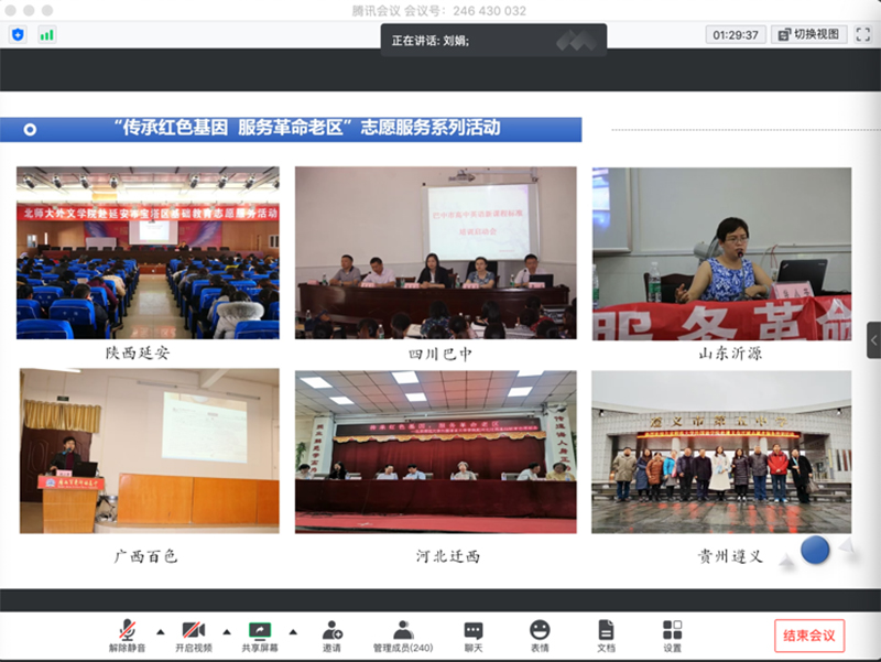 自2018年以来,外文学院持续开展“传承红色基因服务革命老区”志愿服务系列活动,刘娟老师从组织者和参与者的角度分享了这项工作的重要意义,指出在教育扶贫工作当中,应强化服务国家的意识、建立科学合理的机制体制,要结合自身优势、系统深入地开展工作,同时要创新工作方法,调动一切可以调动的力量参与到教育扶贫工作之中。