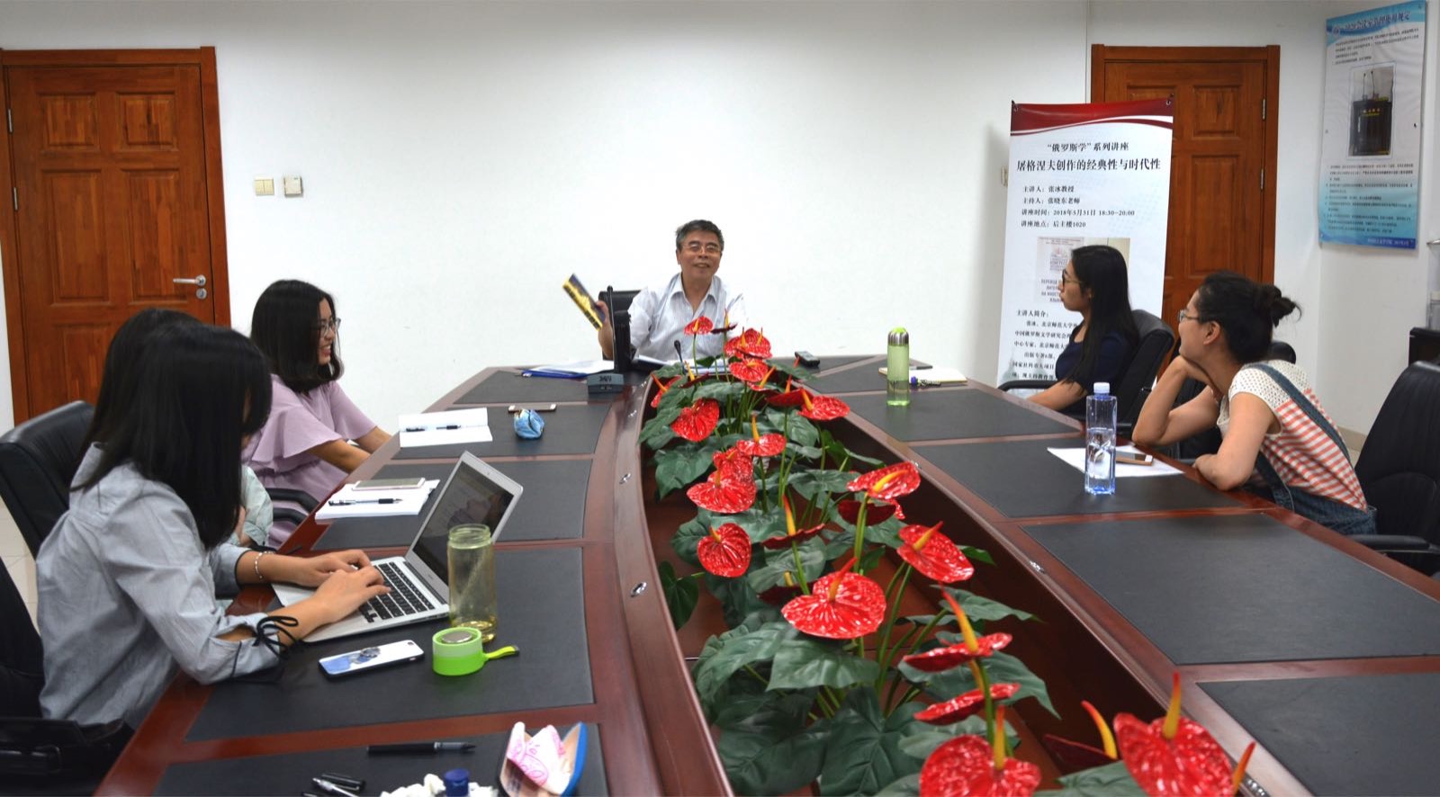 张冰教授向在座师生介绍了许多屠格涅夫的经典名作,并阐释了这些作品在景物、人物心理活动和社会现状描写方面对俄罗斯乃至整个世界文坛的发展都起到了重要的推动作用。
