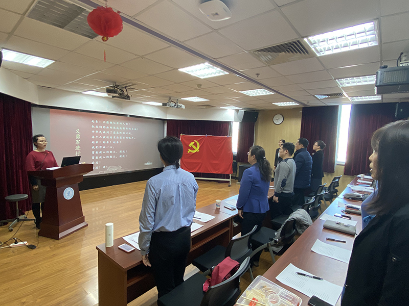 校党委组织员李凤林老师和外文学院党委组织委员林敦来老师对英文系党支部此次预备党员发展大会给予了高度肯定。会议最后,全体参会人员起立奏唱《国际歌》。英文系党支部预备党员发展大会圆满落幕。