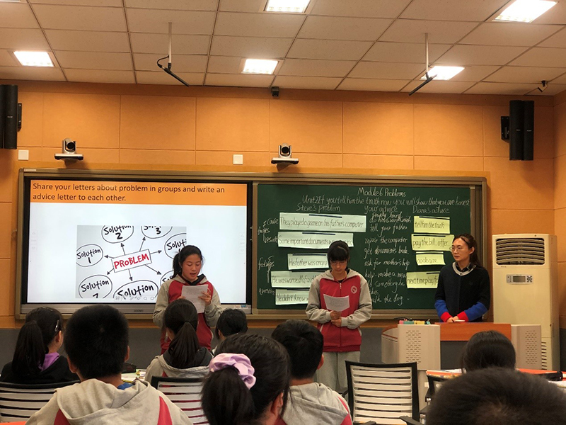 2020年10月28日,曹赛老师进行了正式讲公开课。通过展示课前学生们的调查结果引入主题“problem”,激发学生已知,再过渡到对文本的处理,获取梳理文章基本信息,通过对话练习、角色扮演等小组活动内化所学知识,老师又创设各种情境对学生进行迁移创新,培养了学生的高阶思维,达到了育人目的。