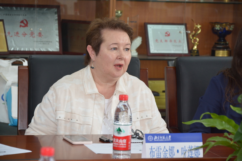 在双方的座谈中,苗兴伟院长、布雷金娜院长分别介绍了双方学院在本硕博三个层次的人才培养、师资力量、专业方向以及海外交流的情况。穆新华主任分享了俄文系在招生培养、与俄罗斯高等学校开展校际合作等方面的办系特色。双方充分肯定了两校在各层次人才培养方面开展合作的潜能,就联合培养模式、合作专业、培养层次、以及在新西伯利亚国立师范大学建立北师大俄文系海外实习基地等问题初步探讨了合作意向。