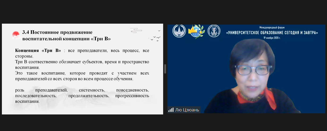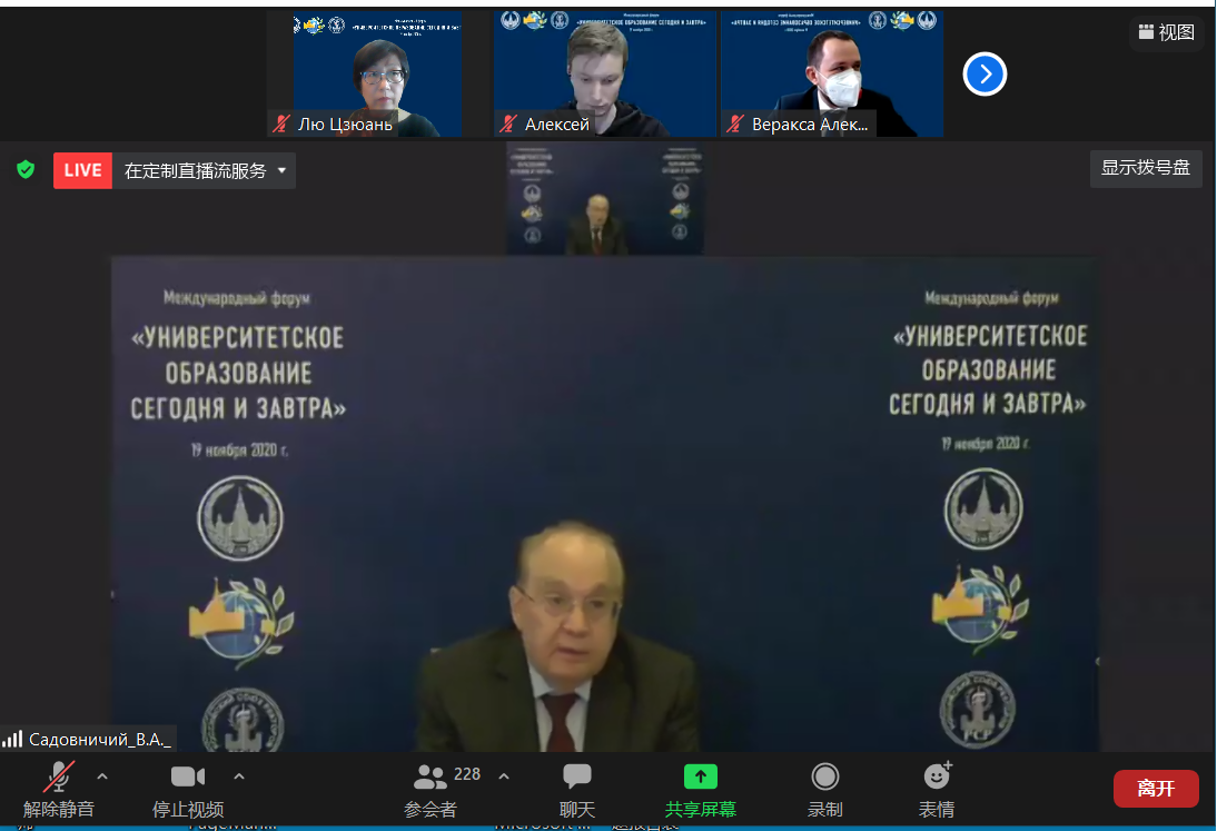 2020年11月19日,由莫斯科大学主办的大型国际论坛“大学教育的今天与明天”成功举办。91沈先生 外文学院党委书记刘娟率学院思政教育团队参加论坛并作题为《中国高校思想政治教育:目标、内容与方法》的发言。