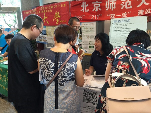 今年招办为每个前去宣传咨询的院系,配备两部手机,以便与考生和家长沟通。基于这两部手机,我们开辟了3个咨询微信群,还有一个由校友组织的家长群。这样,除了在现场宣传与咨询之外,微信群里几乎是无间断地回答家长们连绵不断的问题。现场与微信群里我们同时接待考生和家长的咨询,从不同的角度和侧面更好地宣传了北师大。