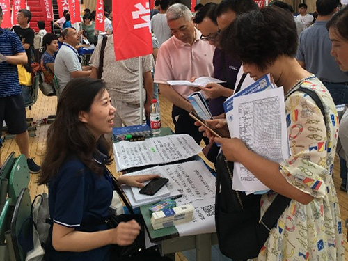 实际参加招生宣传咨询的老师是:麻铁盾、穆新华、陈则航、方芬、吴素娟、张勃诺、孙晓慧、张时雨、程茜、杜冰、林洪、马磊、张力青、蒋虹、王楠、葛晓培、胡笑然、董莹、潘琳共19位老师,其中,第一次参加的老师7名,50岁以上的老师7名,感谢这些老师及所有老师的热情参与与辛苦奉献!