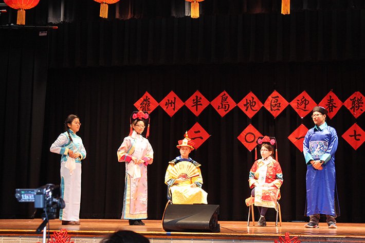 1月28日,威廉玛丽大学孔子学院参与了PCAA主办的维州半岛地区春节庆祝活动,这是当地华人自发组织的春节活动。威玛孔院贡献了不少节目,很好地宣传了中华文化,增添了节日的喜庆气氛。美国学生Kadin,Amanda和孔院志愿者杨璐、刘燕敏、韩煦一起表演了一段深受中国观众喜爱的《甄嬛传》;张雅涵为大家带来了好听的古筝独奏《雪山春晓》;马晓璐为大家献上精彩的二胡独奏《赛马》和《醉胡杨》;陆璐老师为大家带来了中阮独奏《龙灯》和《火把节之夜》。威玛孔院的节目深受台下观众喜爱,掌声连连。