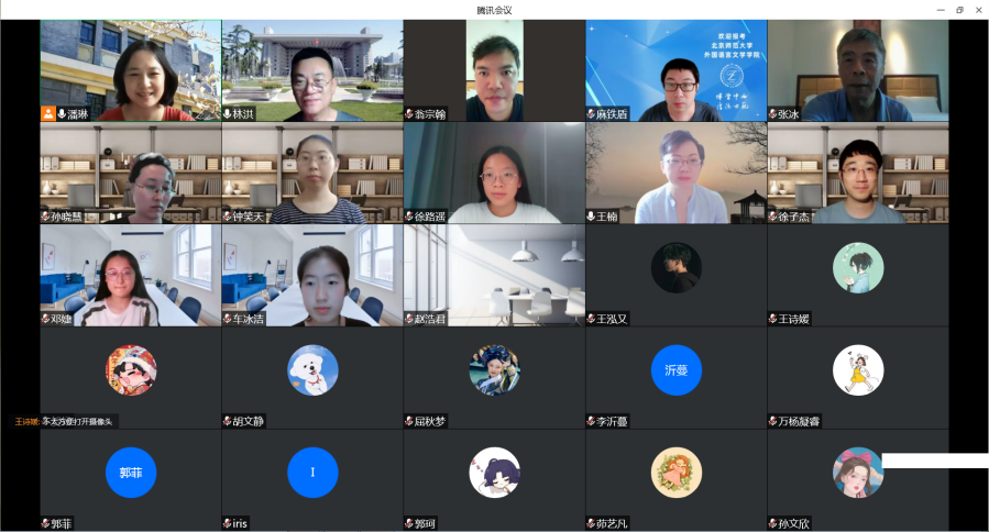 副院长王楠老师向身在线下工作组的副院长孙晓慧老师询问了目前师生在当地的工作生活情况,与其他几位老师一起回应了师生现场提出的问题,同时再次感谢了参与工作的老师同学,表示学院会为大家提供力所能及的后勤保障。会后,为了保证宣传的北师大整体形象,外文学院为19位参与线下志愿服务的北师大在读学生以及6位老师提供了学院院衫。