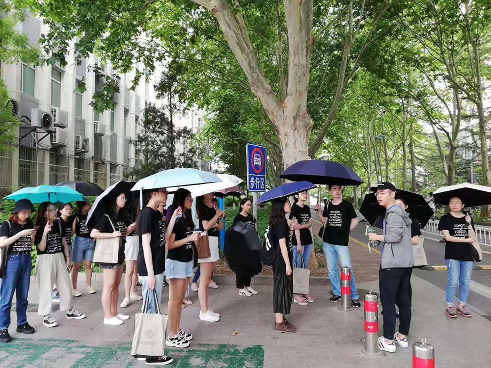 毛毛细雨中,李幸彤学姐和孙引学长带领营员们参观了师大校园。