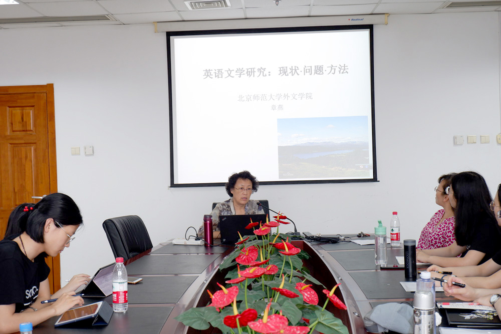 下午13:30,后主楼1020会议室,第一场学术讲座开始。英文系主任王楠教授为同学们简单介绍了讲座内容,随后,章燕教授就“英语文学研究:现状·问题·方法”为同学们带来了精彩的文学讲座,勾勒了当前世界范围内英语文学研究的大致轮廓,并以对华兹华斯的《水仙》的研究为例,简要介绍了英语诗歌研究的角度和方法。