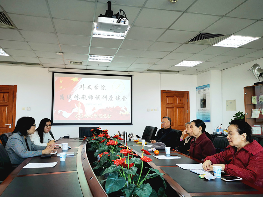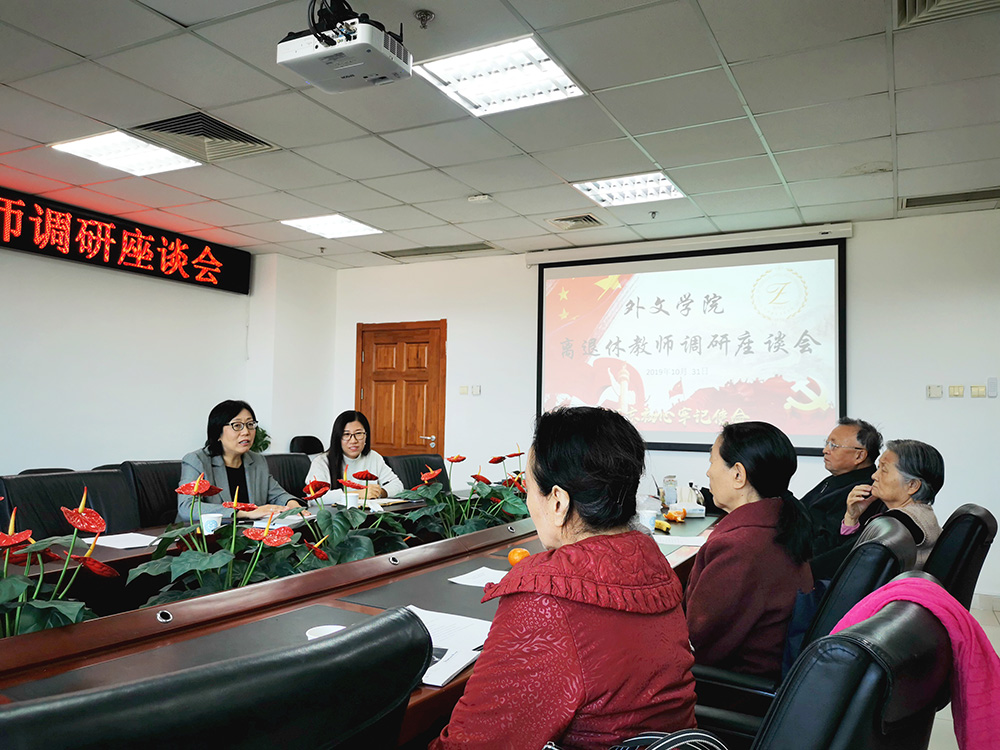 为深入开展“不忘初心,牢记使命”主题教育,把调查研究贯穿全程,深入一线,求真务实,着力发现问题、解决问题,继续推进调研工作,外文学院党委于2019年10月31日上午9:30在后主楼1020会议室召开离退休教师调研座谈会。会议由党委书记刘娟主持召开、团委书记张新颖、离退休教师代表陶昌升、邹映晖、李毅然、徐玉琴参加本次调研座谈会。