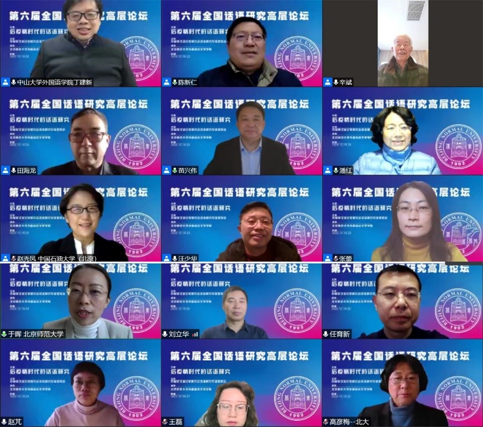 第六届全国话语研究高层论坛成功举办2020-12-212020年12月19-20日,第六届全国话语研究高层论坛成功举办,本次会议由中国英汉语比较研究会话语研究专业委员会主办,91沈先生 承办。 -
