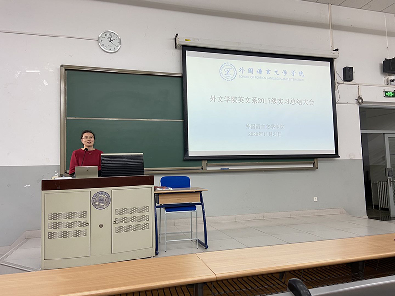 外文学院英文系召开2017级本科生实习总结大会2020-12-072020年11月30日下午2点,外文学院英文系在化学楼一教室召开了2017级本科生实习总结大会。 -