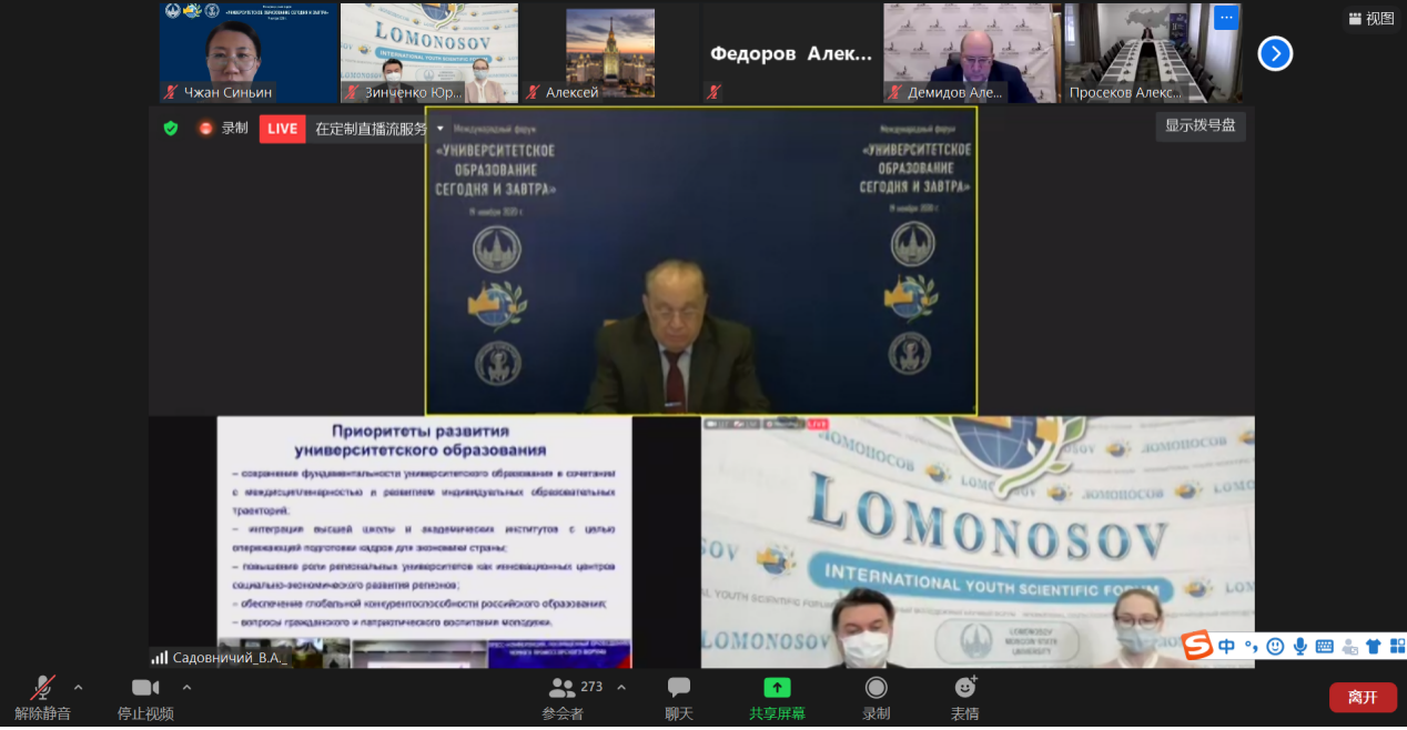 外文学院党委书记刘娟率学院思政教育团队在国际论坛上发言2020-11-202020年11月19日,由莫斯科大学主办的大型国际论坛“大学教育的今天与明天”成功举办。91沈先生 外文学院党委书记刘娟率学院思政教育团队参加论坛并作题为《中国高校思想政治教育:目标、内容与方法》的发言。 -