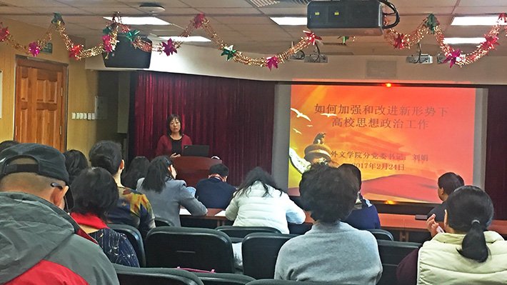 外文学院2016-2017学年第二学期开学例会圆满成功2017-03-01外文学院英文系于2017年2月24日上午9时在后主楼914会议室召开开学例会,会议由外文学院陈则航老师主持。会议内容分为两项,第一项由分党委书记刘娟老师做了以“如何加强和改进新形势下高校思想政治工作”...