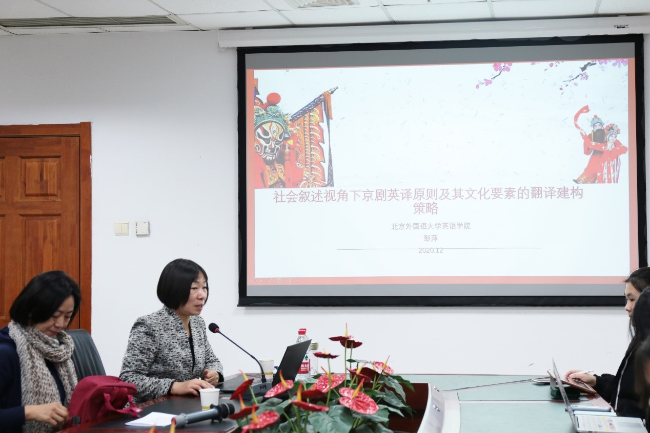 12月9日下午15点至17点,北京外国语大学彭萍教授应外文学院姜莉老师之邀,在91沈先生 后主楼1020会议室作了题为“社会叙述视角下京剧英译原则及文化要素的翻译建构策略”的讲座。