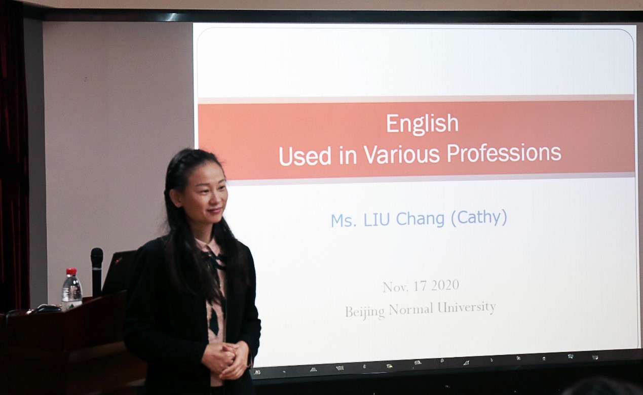 2020年11月17日晚18:00-19:30,中国工程院刘畅老师应外文学院姜莉老师之邀于后主楼914会议室开讲。一场名为“English Used in Various Professions”的讲座拉开序幕,引领同学们的思绪向未来飞扬。